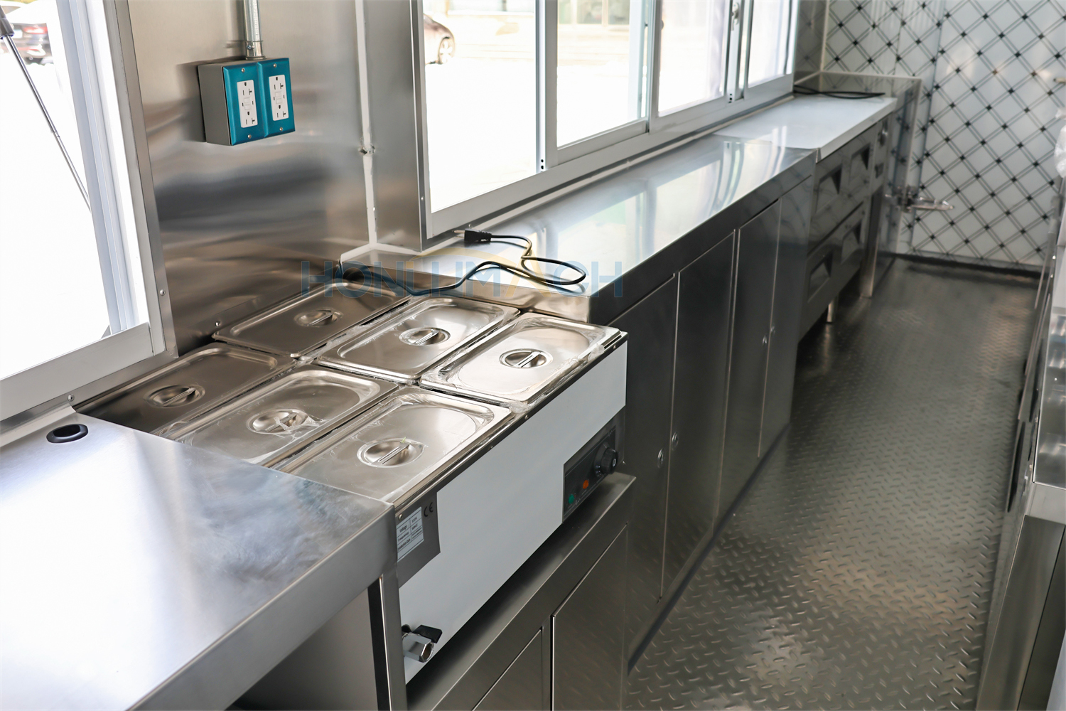 Μπορούμε να εξοπλίσουμε τα ρυμουλκούμενα τροφίμων με εξοπλισμό κουζίνας που ανταποκρίνεται στις απαιτήσεις της χώρας του πελάτη. Απλά επικοινωνήστε μαζί μας για να μας πείτε τις απαιτήσεις σας!