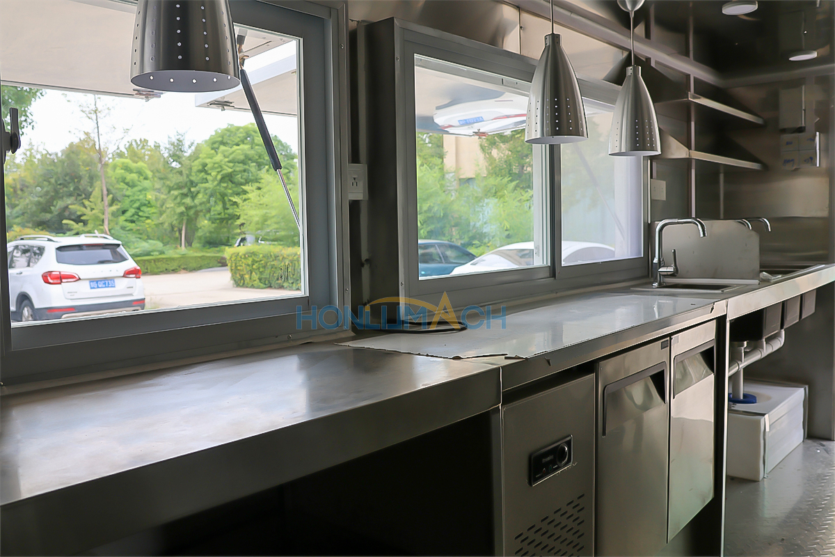 - Accesorios modernos y avanzados equipados en el remolque móvil de alimentos;
