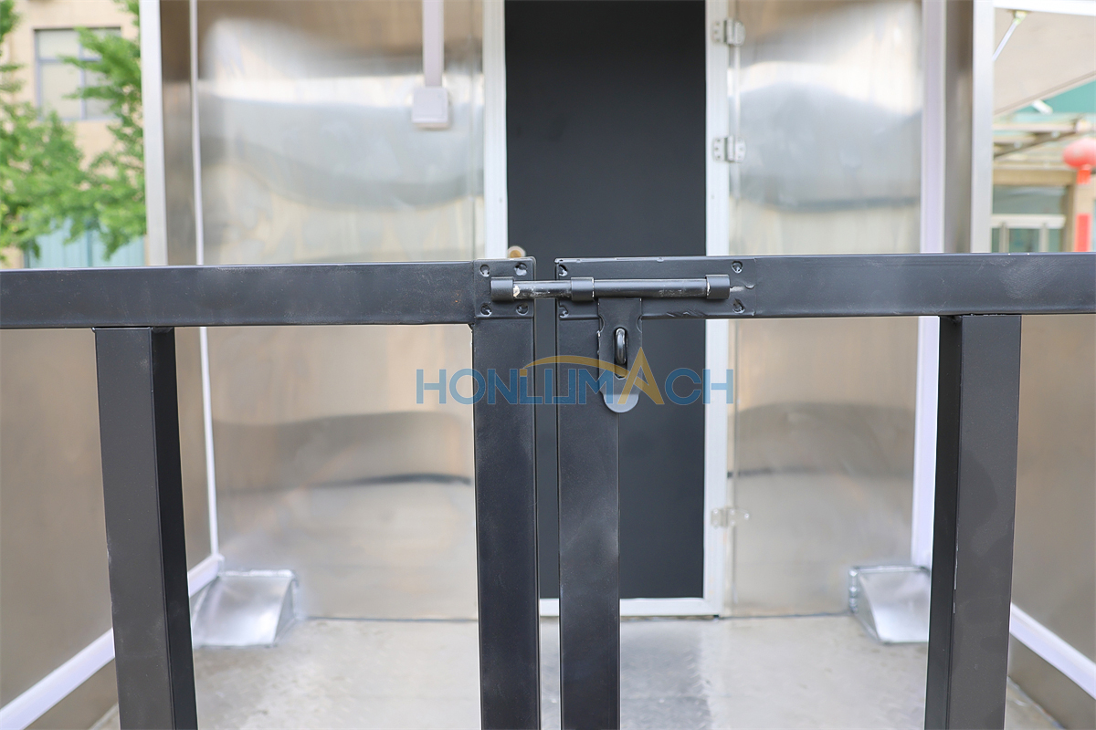 | Standartinė konfigūracija | 1) 201 nerūdijančio plieno vidinė sienelė, 2) 201 nerūdijančio plieno darbastalis, 3) 304 nerūdijančio plieno kriauklės *2 4) karšto ir šalto vandens čiaupas *1 5) 20 litrų vandens krepšelis *2 6) padanga * 4 7) domkratas * 4 8) didelis aptarnavimo langas * 1 9) lizdas * 6 10) maitinimo jungiklis Daugiau, pritaikyta |