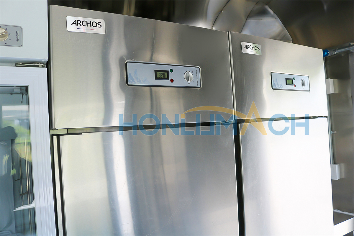 | Стандардна конфигурација | 1) Внатрешен ѕид од не'рѓосувачки челик 201, 2) работна маса од не'рѓосувачки челик 201, 3) 304 мијалници од не'рѓосувачки челик *2 4) чешма за топла и ладна вода *1 5) Кошница за вода од 20 литри *2 6) гума*4 7) Џек*4 8) голем сервисен прозорец * 1 9) штекер*6 10) прекинувач за напојување Повеќе, прилагодено |