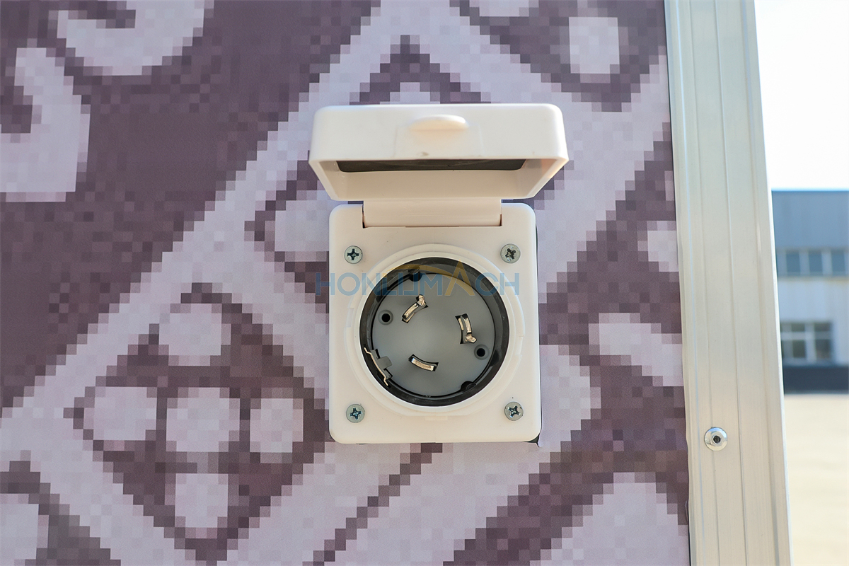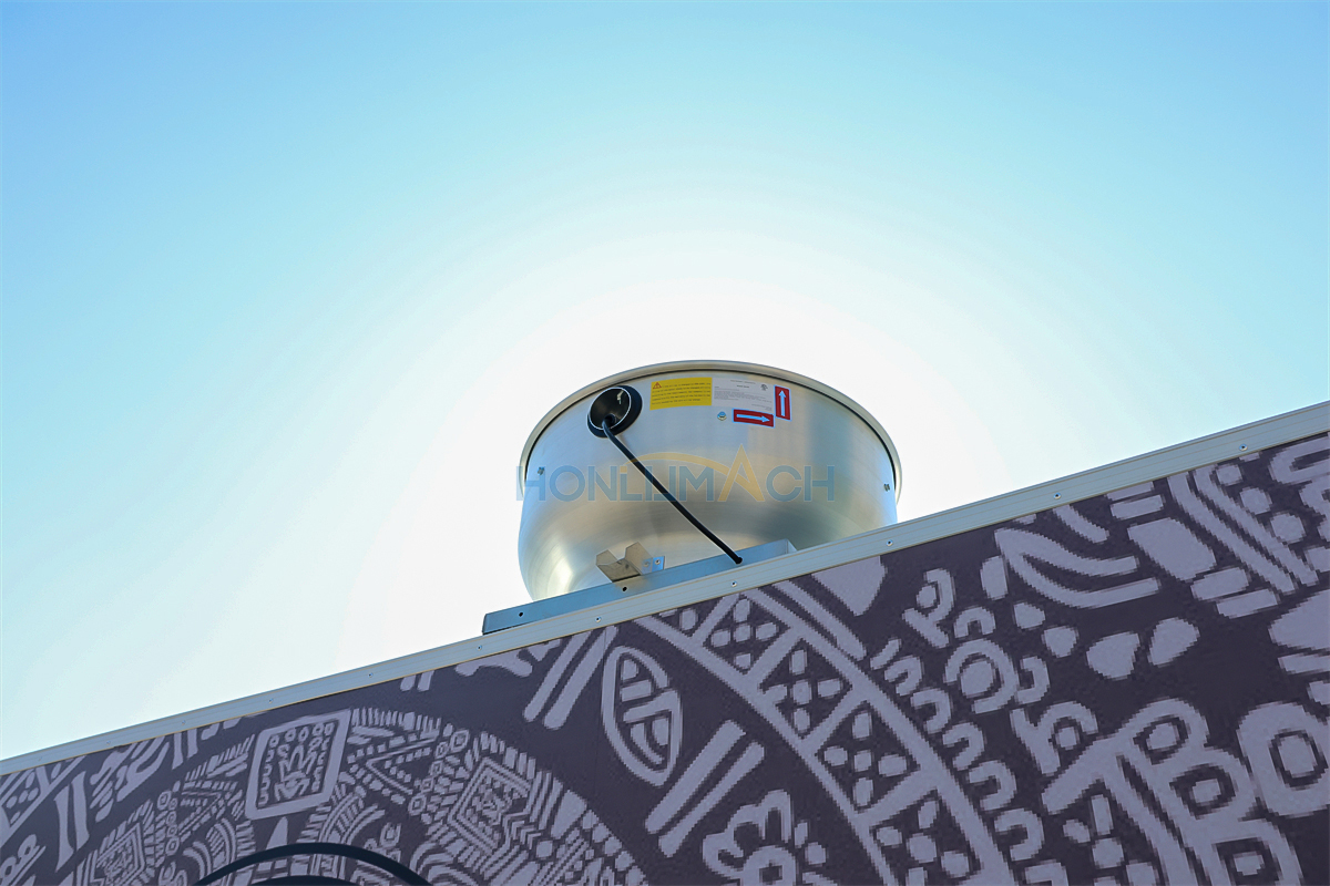 In the front of the food trailer, we have made two big servie windows according to the customer’s requirements. That will be very convenient for guests who come to dine to order and pick up their meals. On the top of each window, we have installed a retractable awning. The awning will protect people from sunshine and rain, which is a thoughtful design. Next, let’s see the back view of this large food trailer.