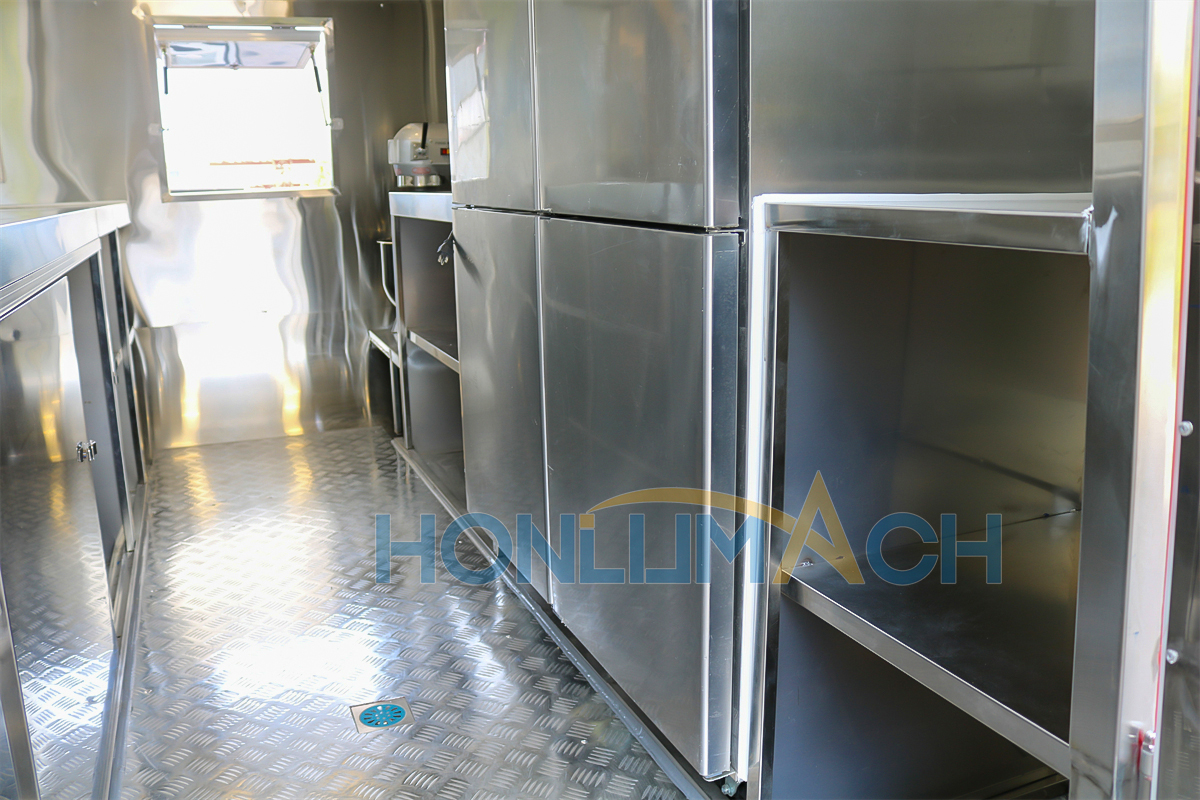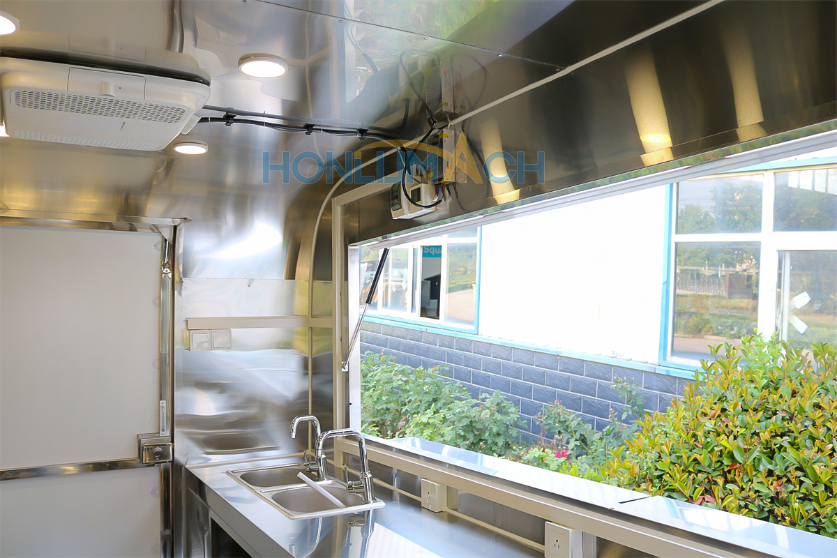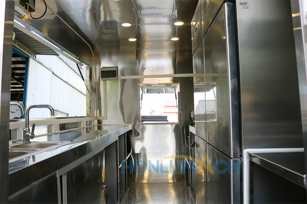 | Standard Configuration | 1) 201 Stainless steel interior wall, 2) 201 stainless steel workbench, 3) 304 Stainless steel sinks *2 4) hot & cold tap *1 5) 20L water basket *2 6) tire*4 7) jack*4 8) big service window * 1 9) socket*6 10) power switch More, customized |