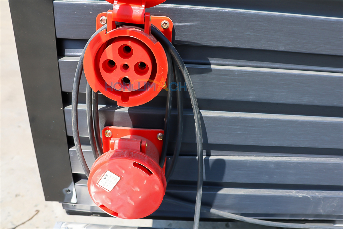 In the front of the food trailer, we have made two big servie windows according to the customer’s requirements. That will be very convenient for guests who come to dine to order and pick up their meals. On the top of each window, we have installed a retractable awning. The awning will protect people from sunshine and rain, which is a thoughtful design. Next, let’s see the back view of this large food trailer.
