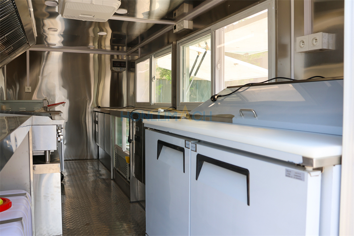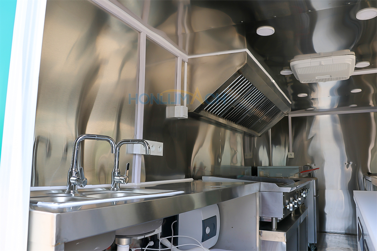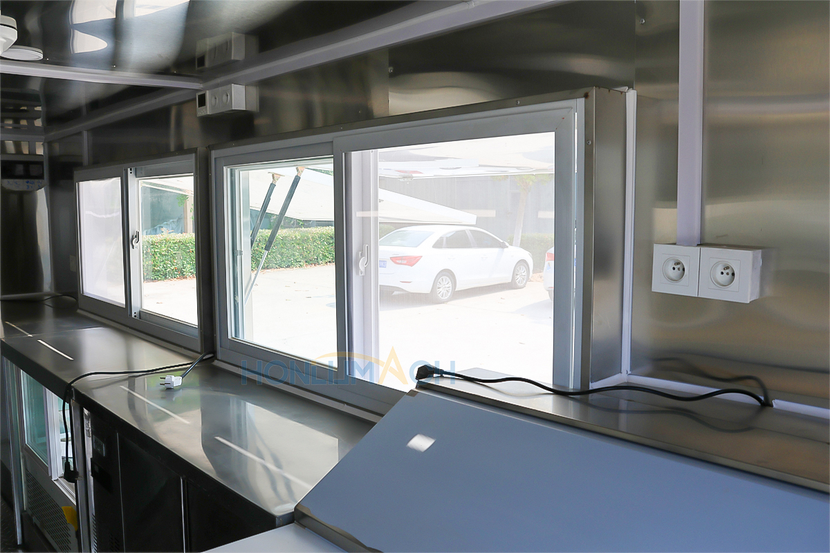 | Standard Configuration | 1) 201 Stainless steel interior wall, 2) 201 stainless steel workbench, 3) 304 Stainless steel sinks *2 4) hot & cold tap *1 5) 20L water basket *2 6) tire*4 7) jack*4 8) big service window * 1 9) socket*6 10) power switch More, customized |