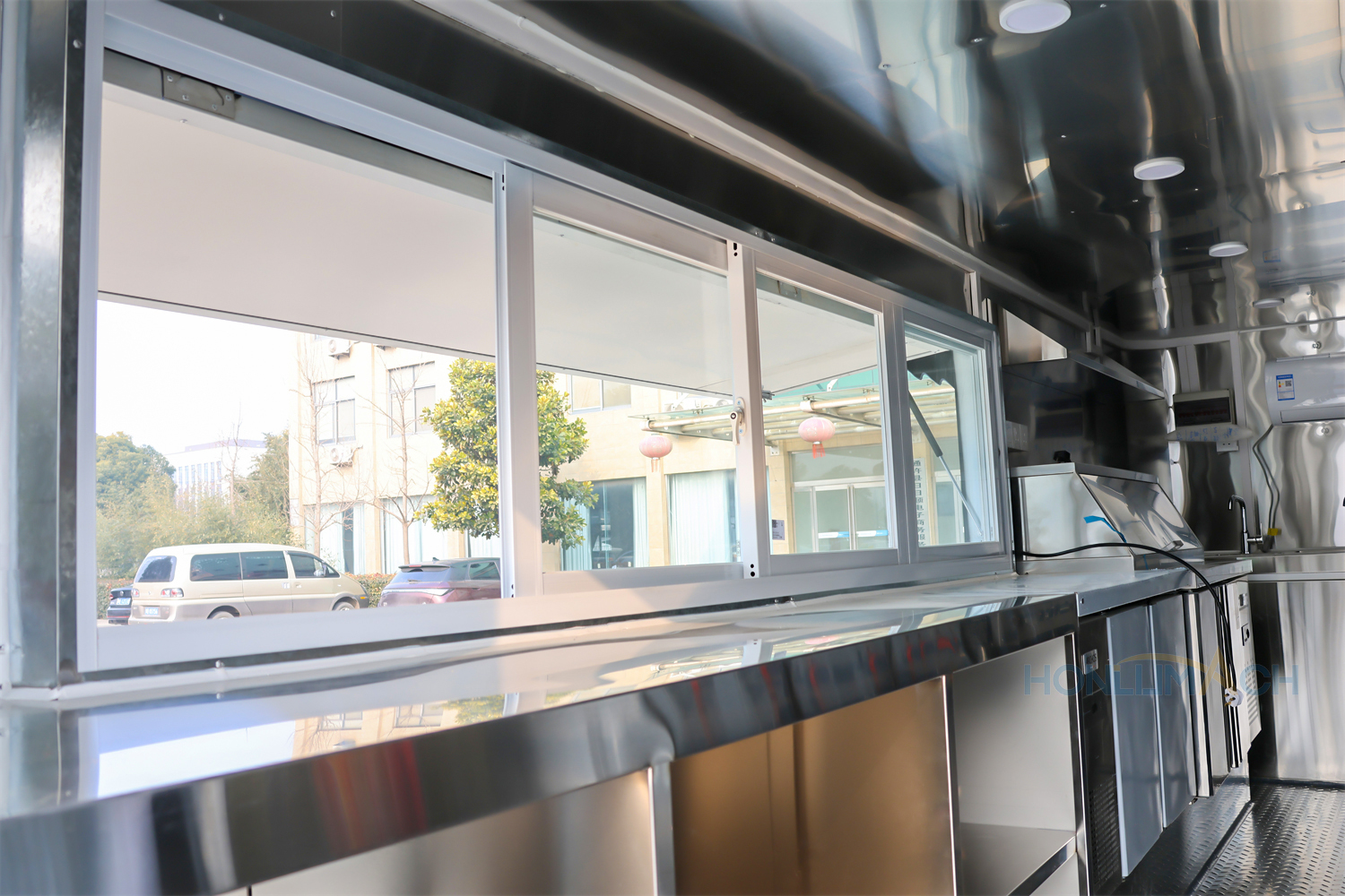 | Standard Configuration | 1) 201 Stainless steel interior wall, 2) 201 stainless steel workbench, 3) 304 Stainless steel sinks *2 4) hot & cold tap *1 5) 20L water basket *2 6) tire*4 7) jack*4 8) big service window * 1 9) socket*6 10) power switch More, customized |