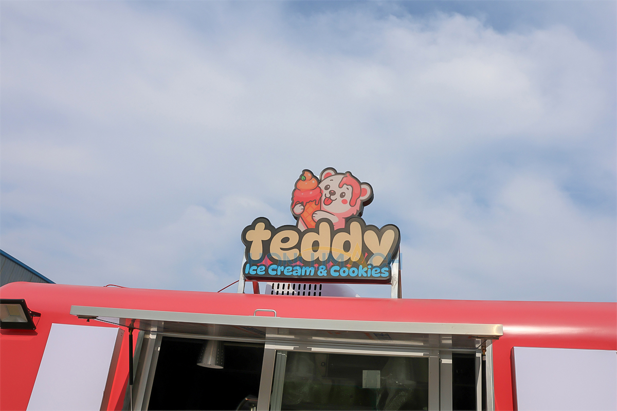 This is a 16.4ft food truck we have customized for a customer from the Czech Republic. We manufacture it according to the customer’s requirements. As we can see from the picture below, it has an appealing signboard and will shine in the night.