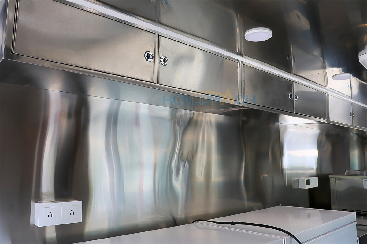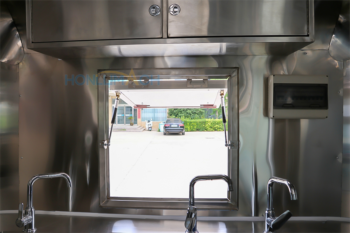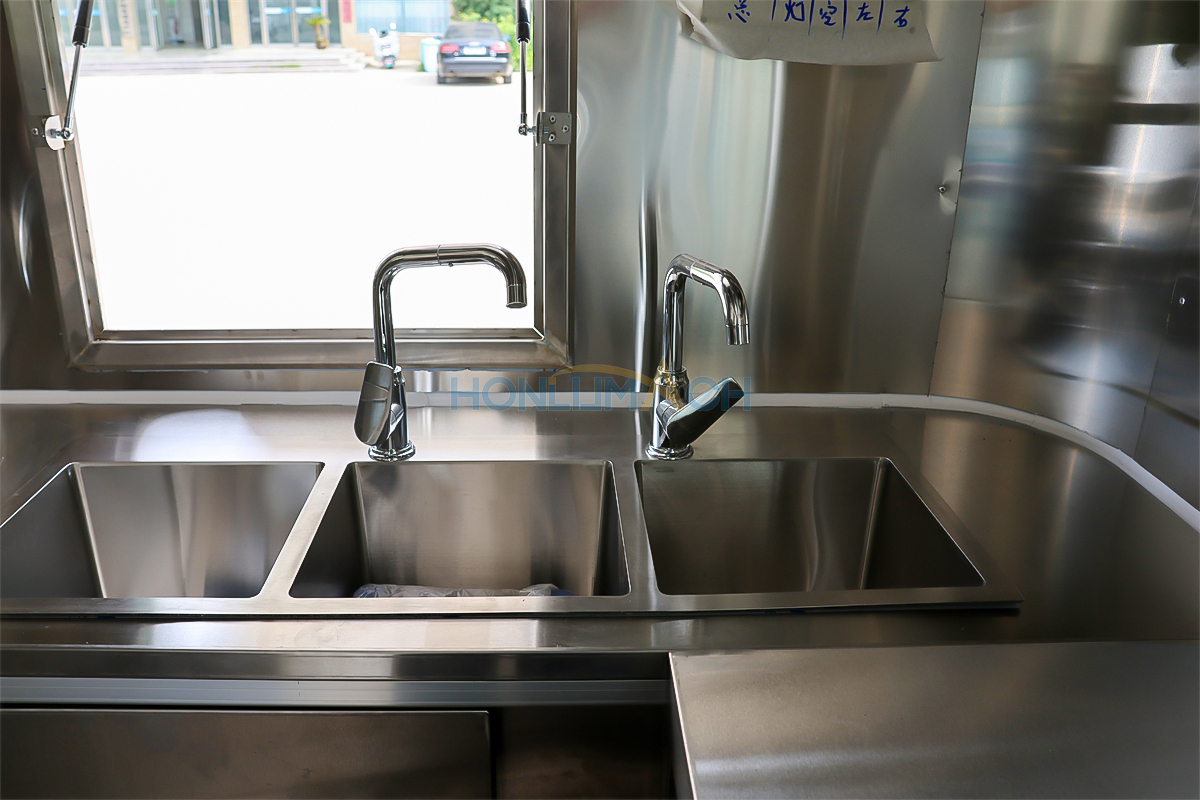 | Standard Configuration | 1) 201 Stainless steel interior wall, 2) 201 stainless steel workbench, 3) 304 Stainless steel sinks *2 4) hot & cold tap *1 5) 20L water basket *2 6) tire*4 7) jack*4 8) big service window * 1 9) socket*6 10) power switch More, customized |