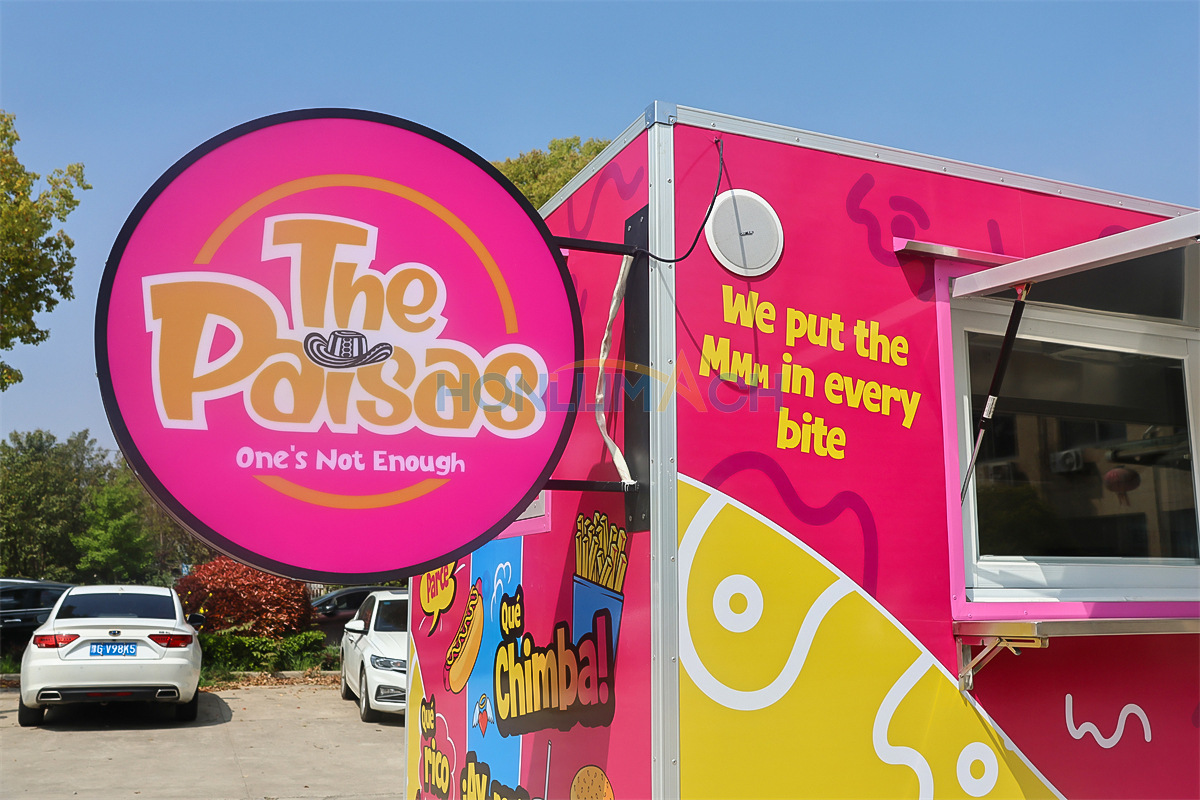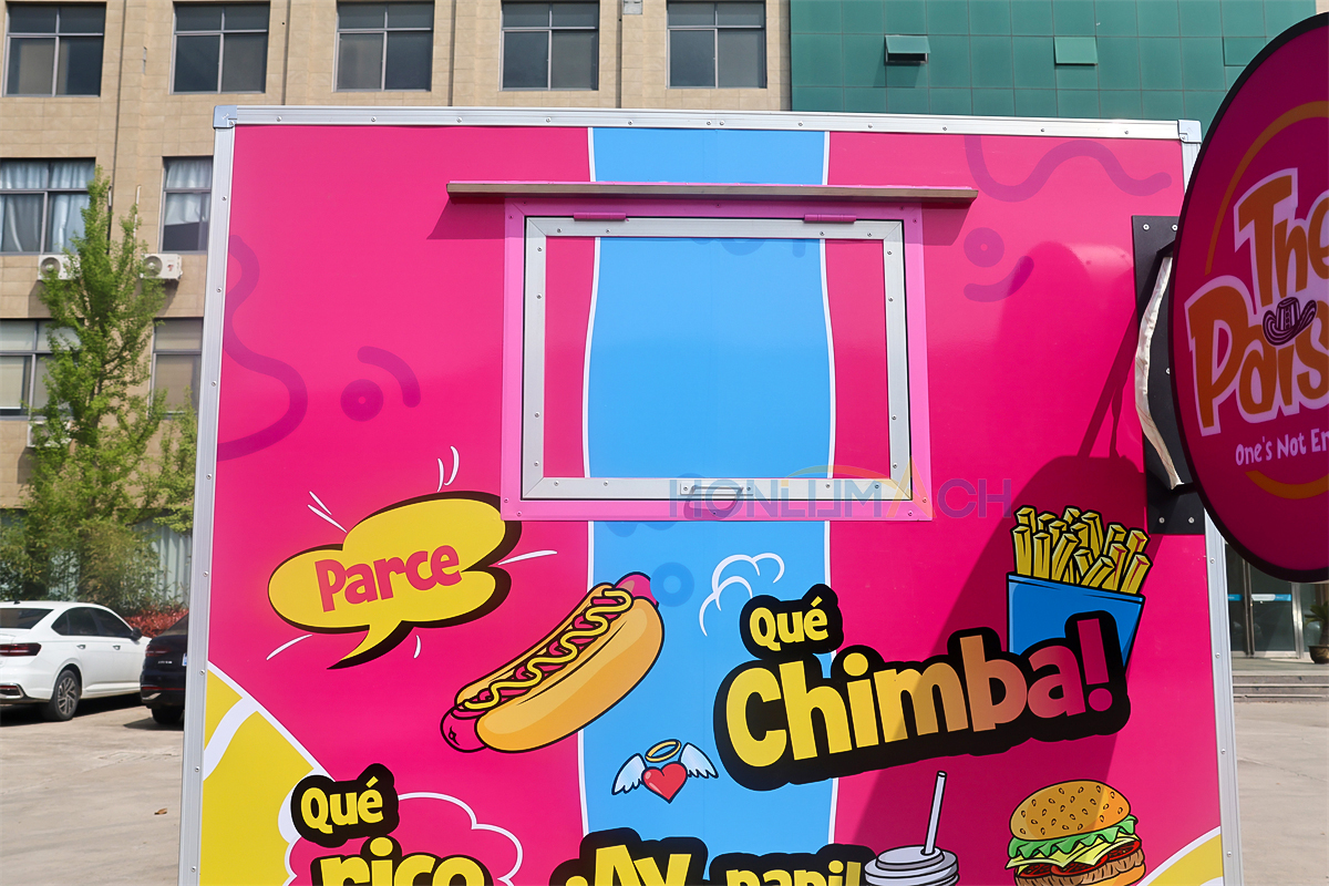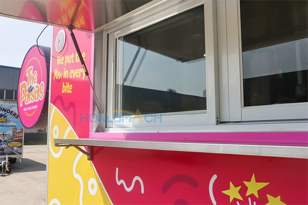 For better customer interaction, an LCD display screen was installed on the right side of the truck, allowing customers to easily view the menu and place orders. In addition, two custom service windows with sunshades were designed to improve serving efficiency while providing protection from sunlight and rain.