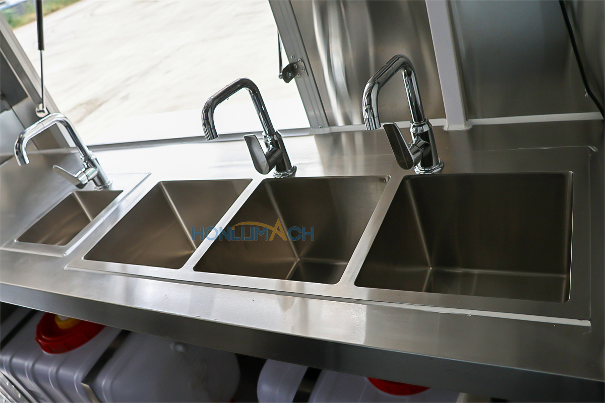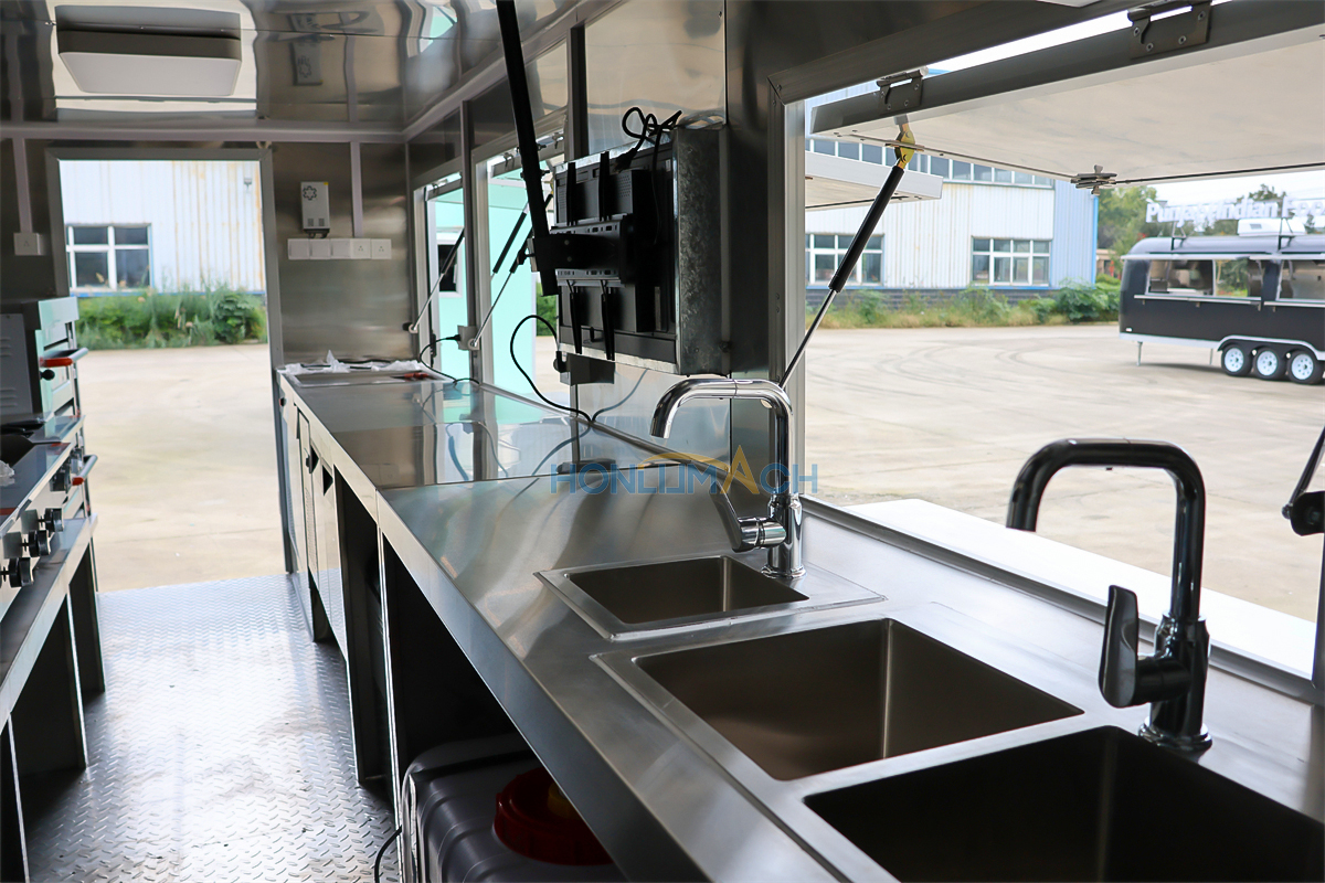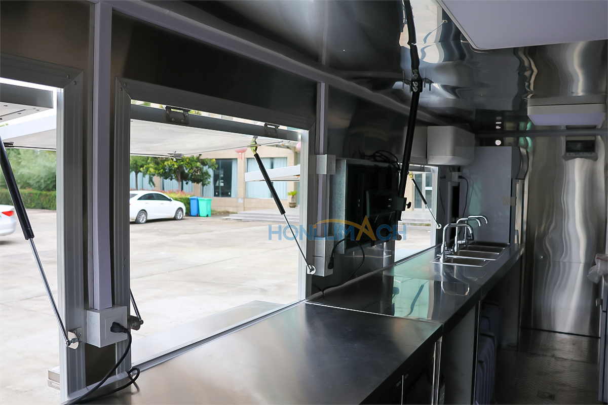 | Standard Configuration | 1) 201 Stainless steel interior wall, 2) 201 stainless steel workbench, 3) 304 Stainless steel sinks *2 4) hot & cold tap *1 5) 20L water basket *2 6) tire*4 7) jack*4 8) big service window * 1 9) socket*6 10) power switch More, customized |