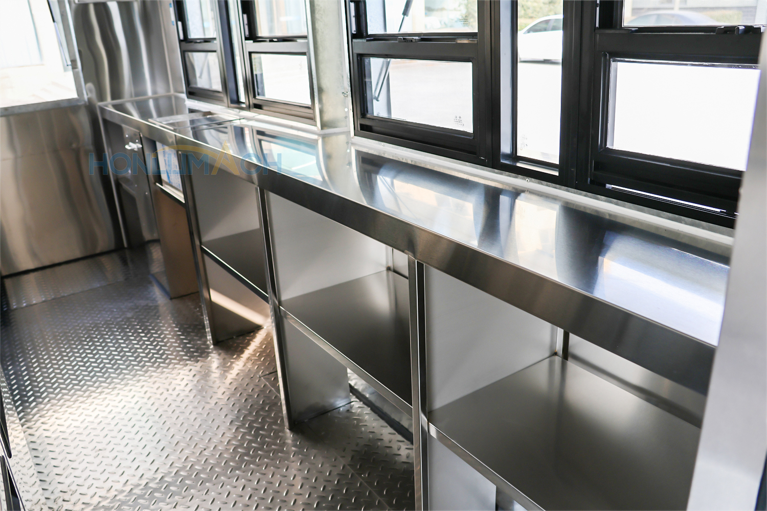 | Standard Configuration | 1) 201 Stainless steel interior wall, 2) 201 stainless steel workbench, 3) 304 Stainless steel sinks *2 4) hot & cold tap *1 5) 20L water basket *2 6) tire*4 7) jack*4 8) big service window * 1 9) socket*6 10) power switch More, customized |