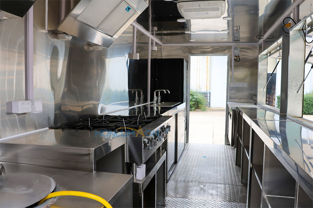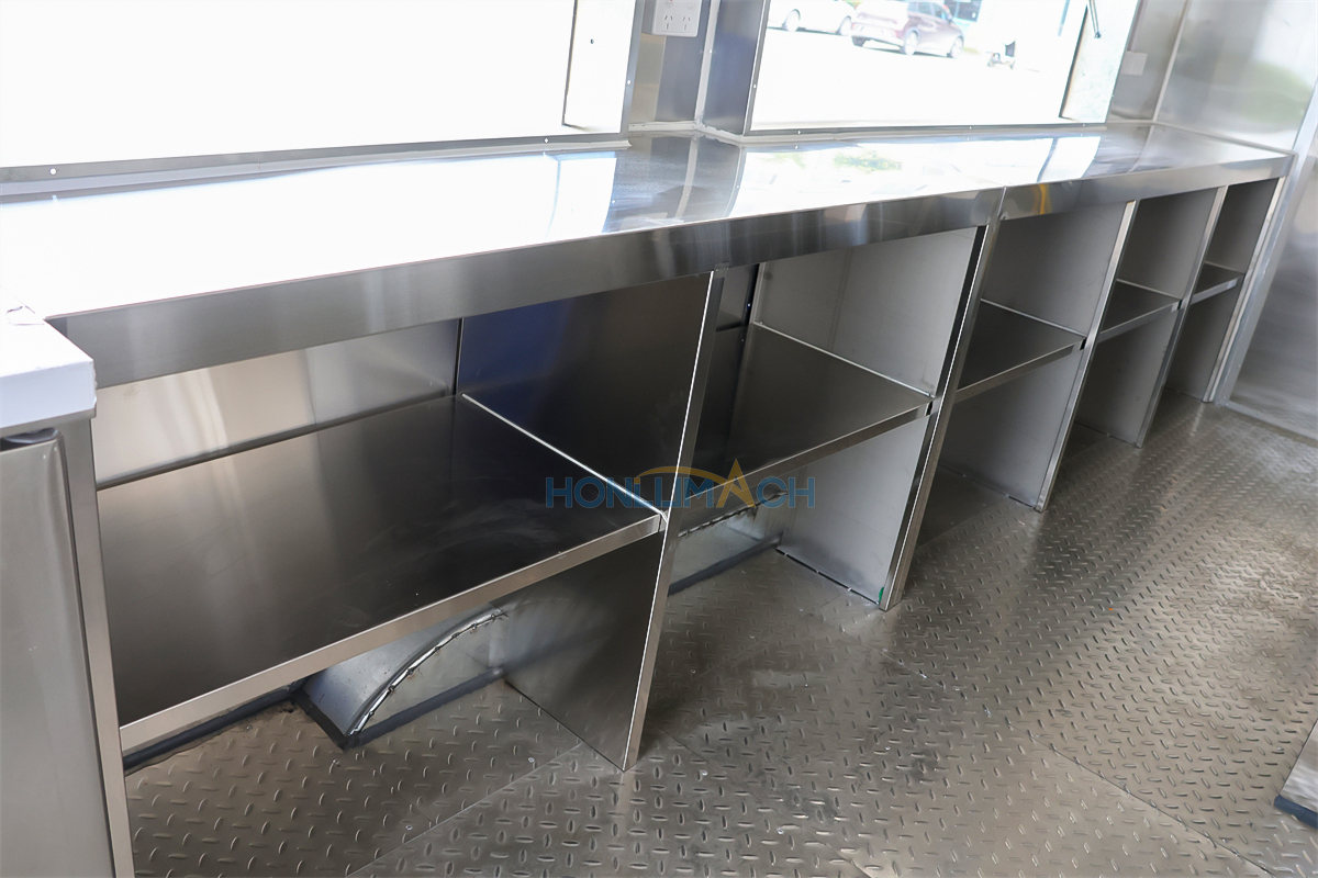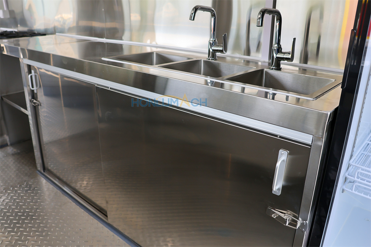 | Standard Configuration | 1) 201 Stainless steel interior wall, 2) 201 stainless steel workbench, 3) 304 Stainless steel sinks *2 4) hot & cold tap *1 5) 20L water basket *2 6) tire*4 7) jack*4 8) big service window * 1 9) socket*6 10) power switch More, customized |