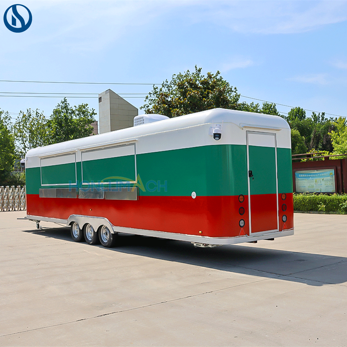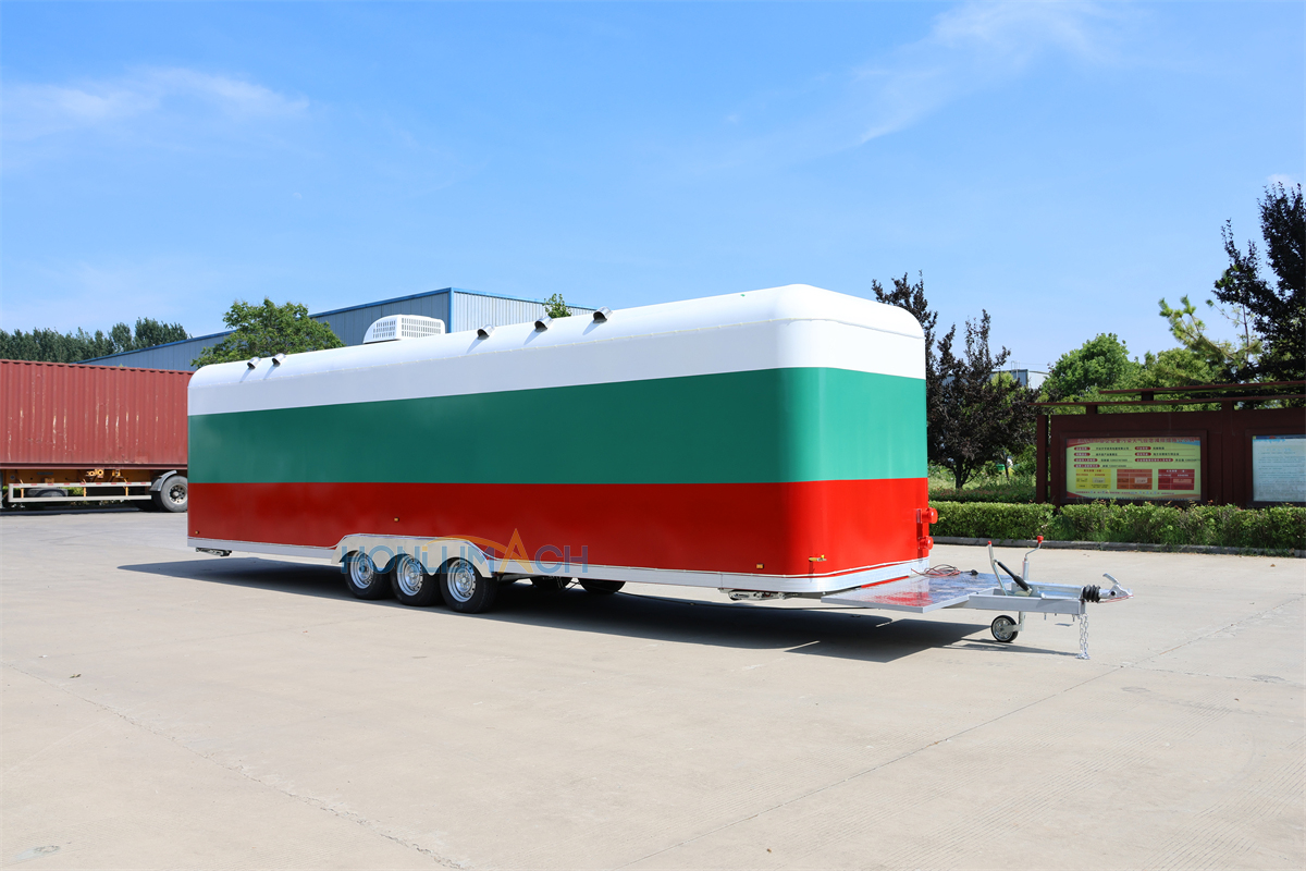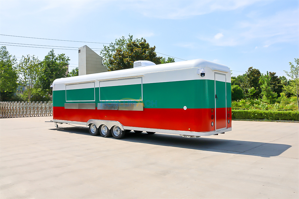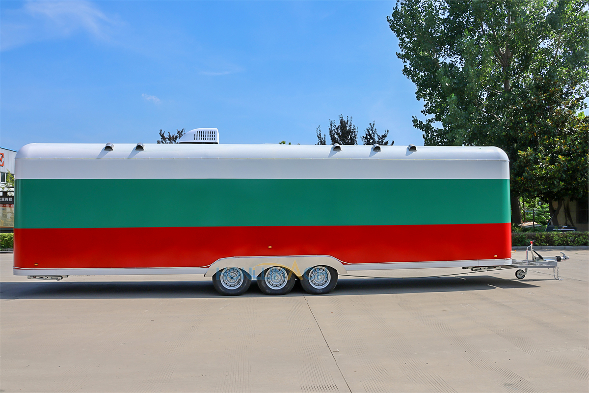 This is a food truck from Serbia, approximately 29.5 feet long. The entire truck’s appearance, color, pattern, and structure were customized to the client’s specifications.
