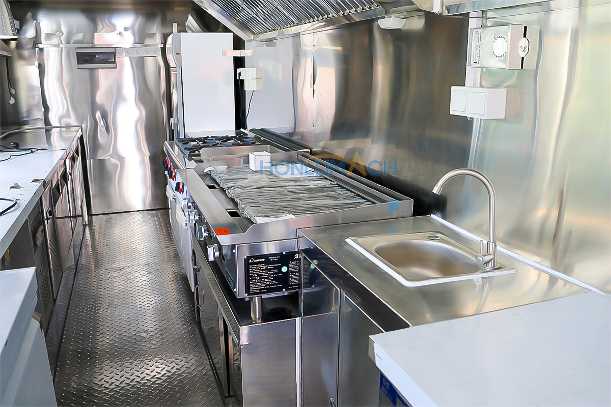 | Standard Configuration | 1) 201 Stainless steel interior wall, 2) 201 stainless steel workbench, 3) 304 Stainless steel sinks *2 4) hot & cold tap *1 5) 20L water basket *2 6) tire*4 7) jack*4 8) big service window * 1 9) socket*6 10) power switch More, customized |