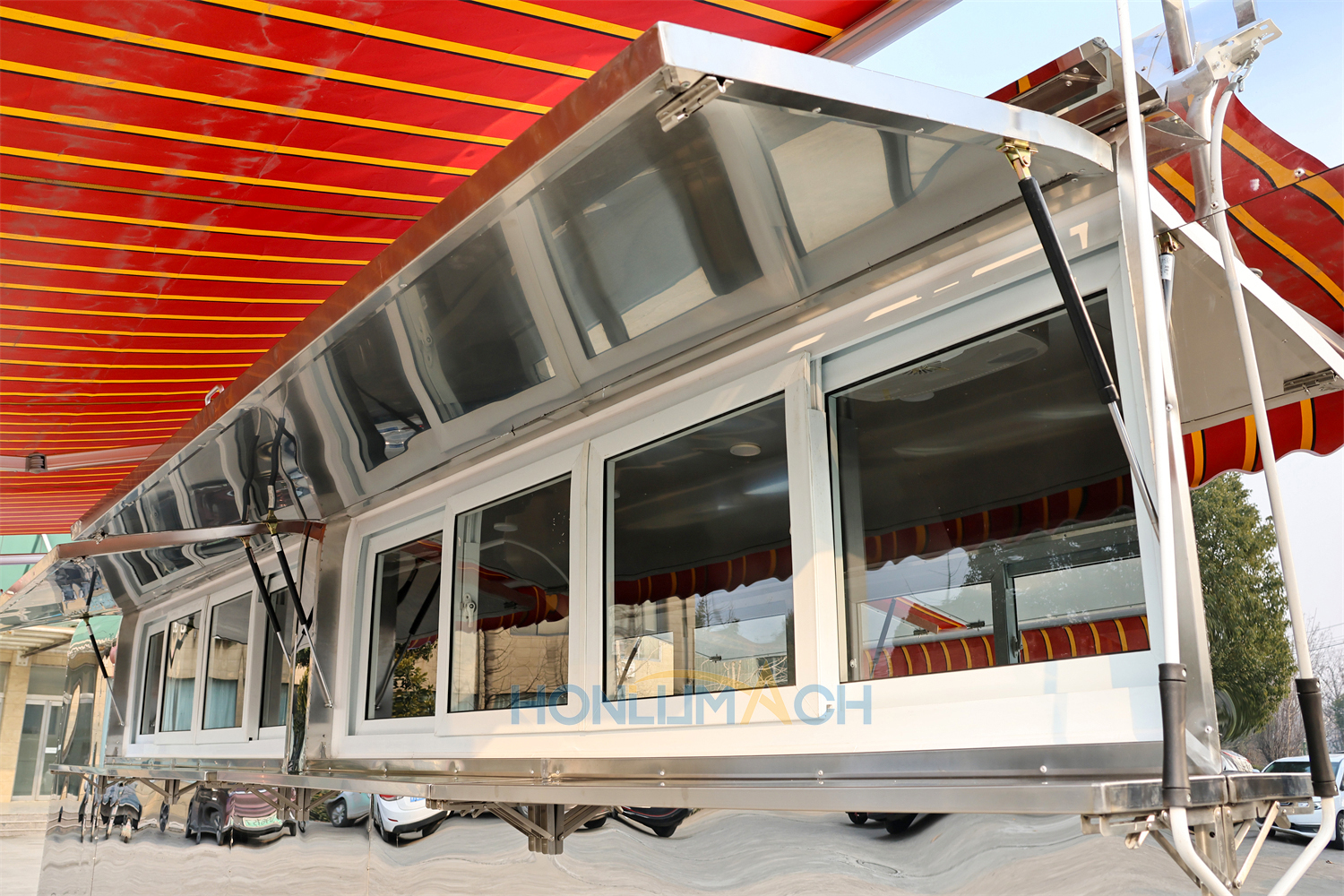 Also, we have installed a retractable awning above the windows according to customer’s requirement. That will prevents diners from sunshine and rain.