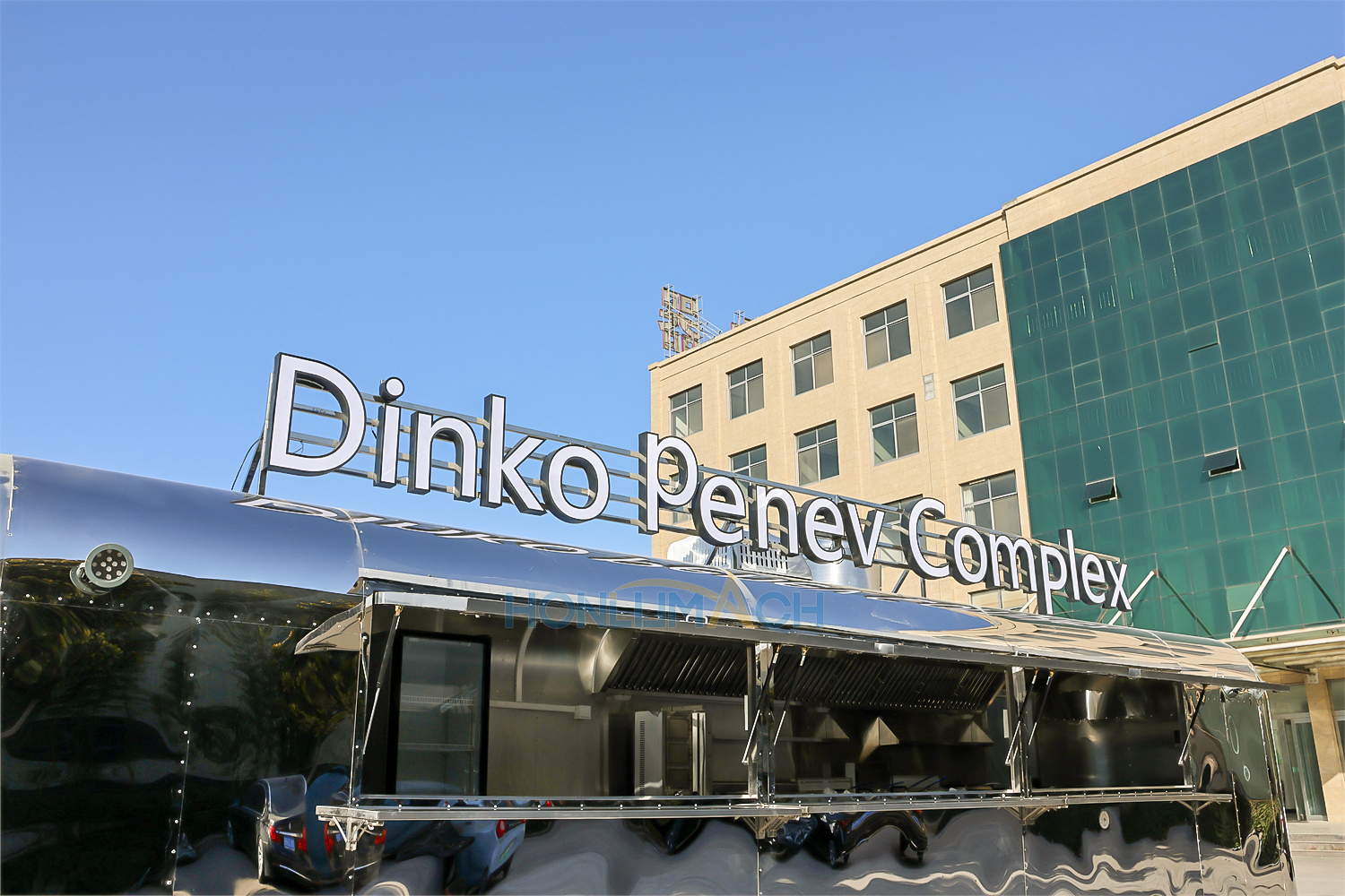 This is a 32ft stainless steel mobile catering trailer we have customized for a customer from Iceland. We manufacture it according to the customer’s requirements. As we can see from the pictures, it has big service windows in the front, which is very convenient for customers to order and pick up their meals.