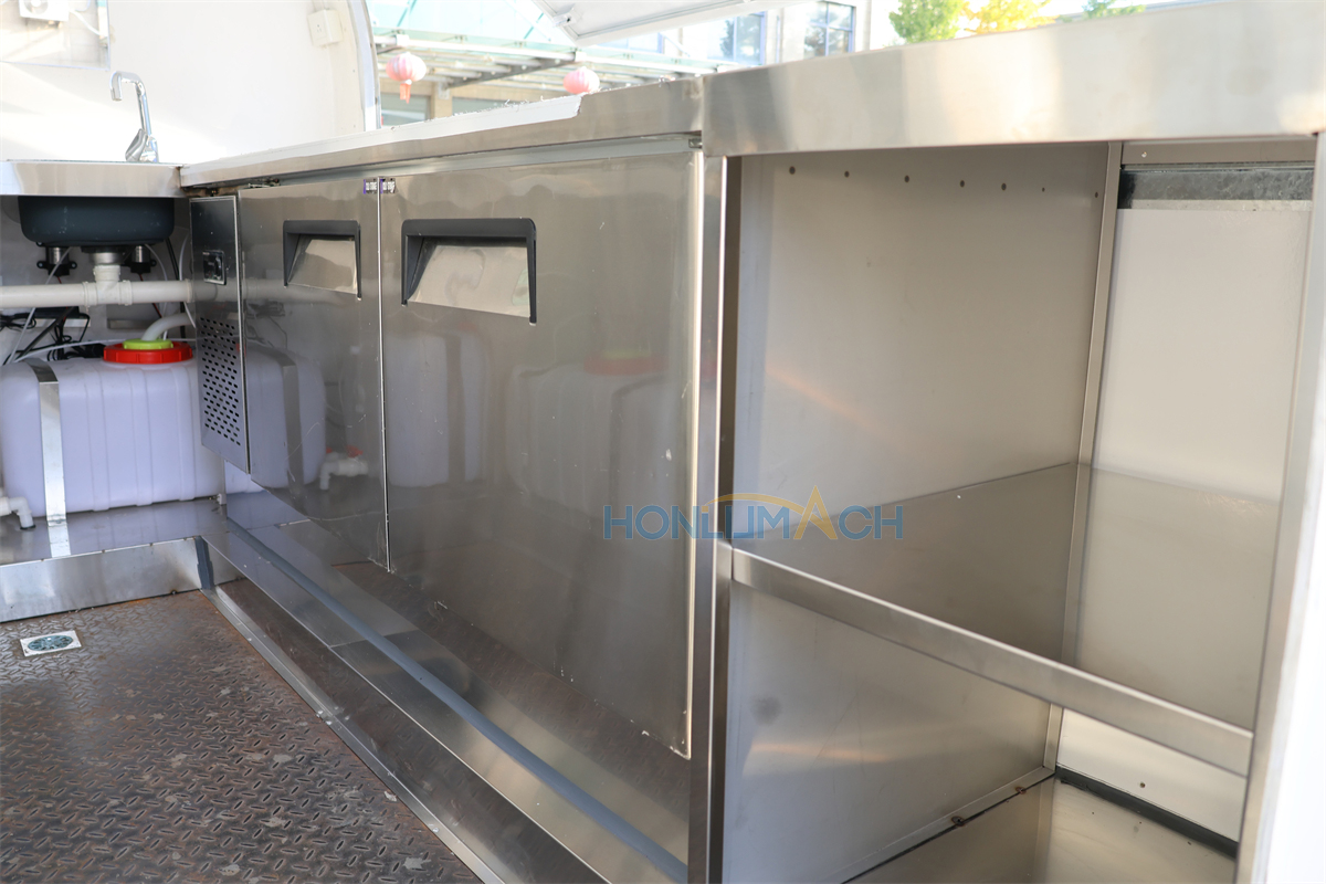 | Standard Configuration | 1) 201 Stainless steel interior wall, 2) 201 stainless steel workbench, 3) 304 Stainless steel sinks *2 4) hot & cold tap *1 5) 20L water basket *2 6) tire*4 7) jack*4 8) big service window * 1 9) socket*6 10) power switch More, customized |