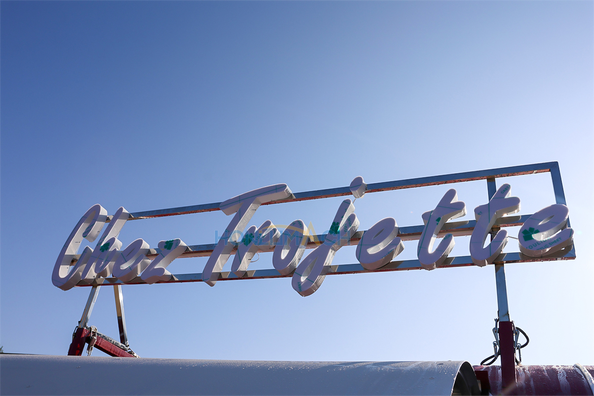 This is a 9.8 ft mobile food trailer we have customized for a customer from Latvia. As we can see from the picture below, it has one big service window in the front. Beside each window, there is a menu board.The custom-designed illuminated sign on the roof of the food truck shines even at night.