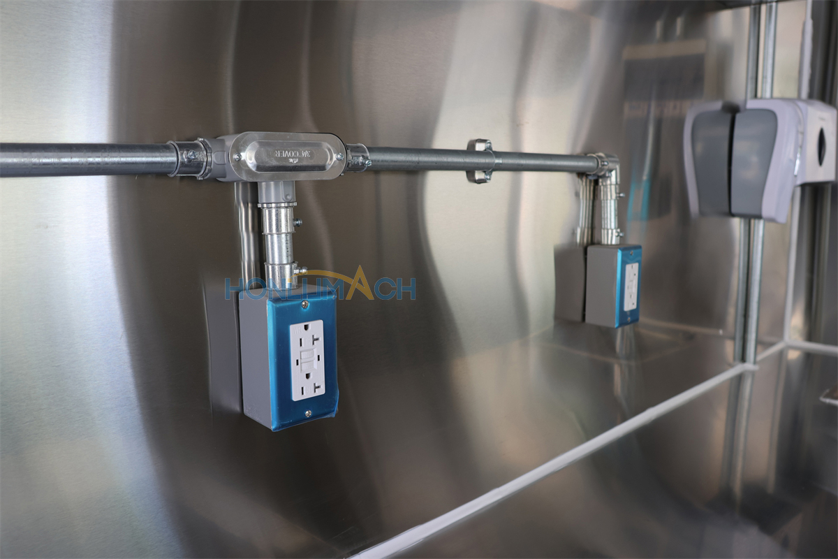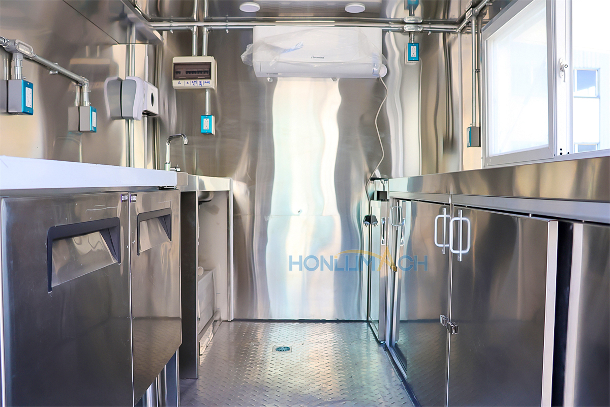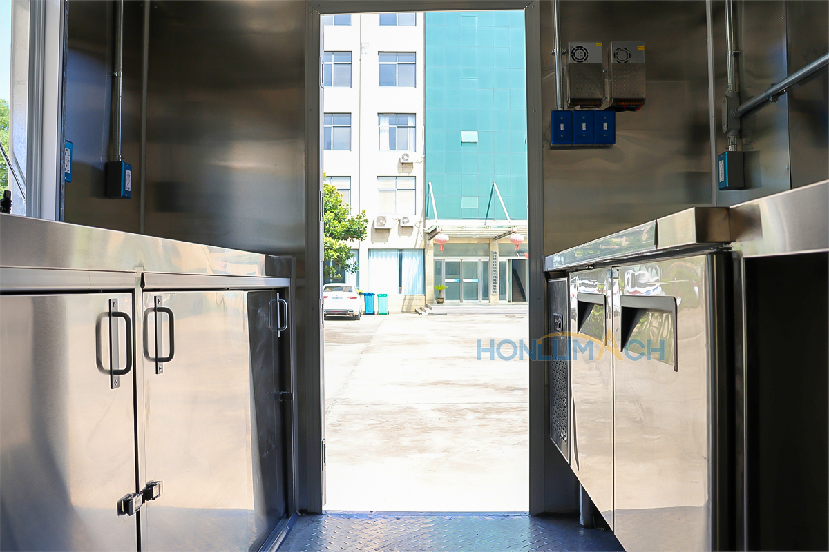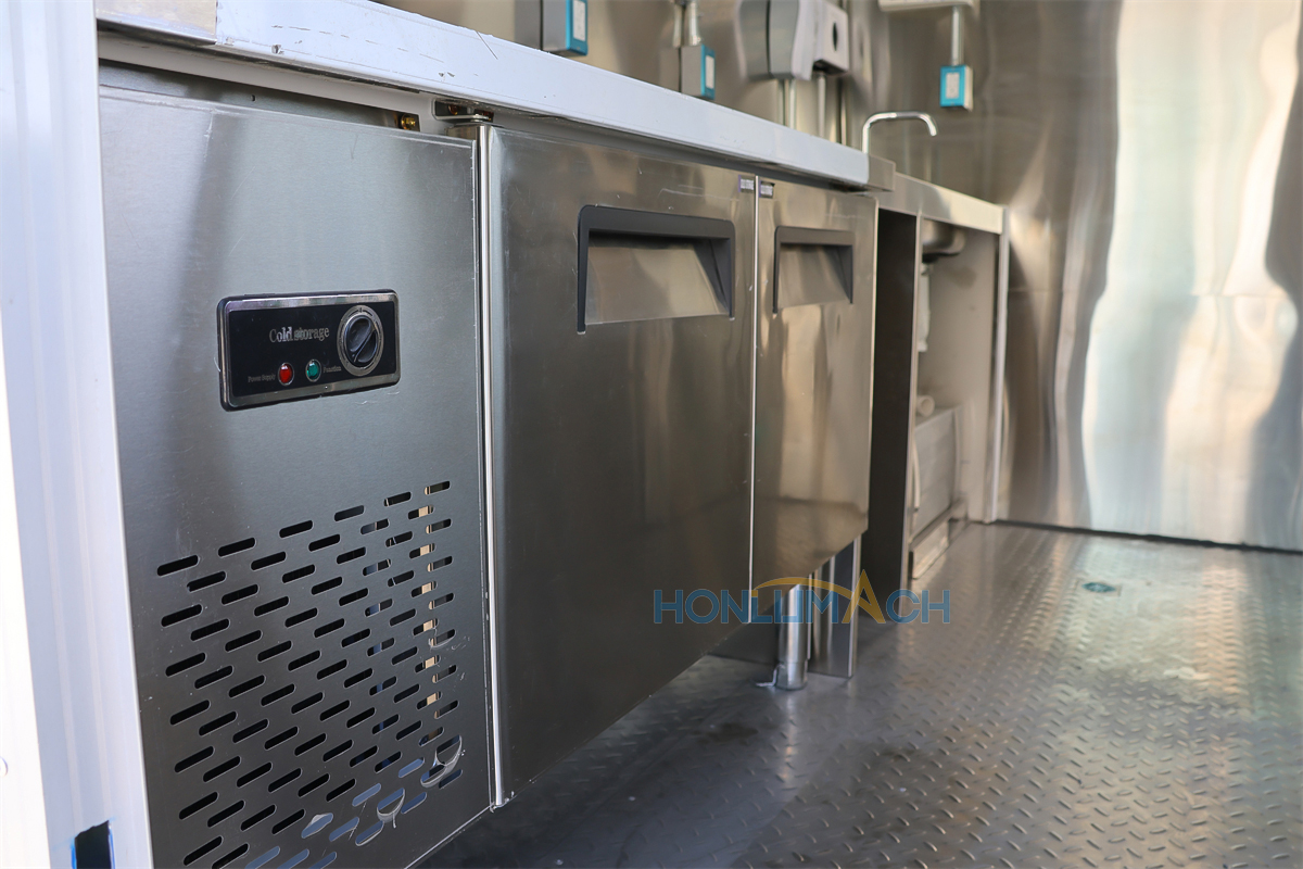 | Standard Configuration | 1) 201 Stainless steel interior wall, 2) 201 stainless steel workbench, 3) 304 Stainless steel sinks *2 4) hot & cold tap *1 5) 20L water basket *2 6) tire*4 7) jack*4 8) big service window * 1 9) socket*6 10) power switch More, customized |